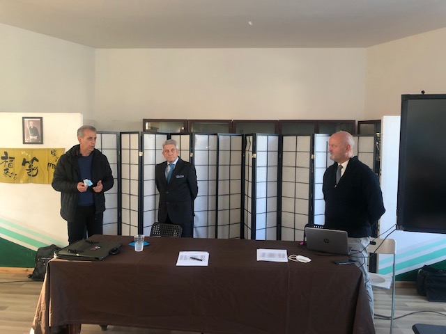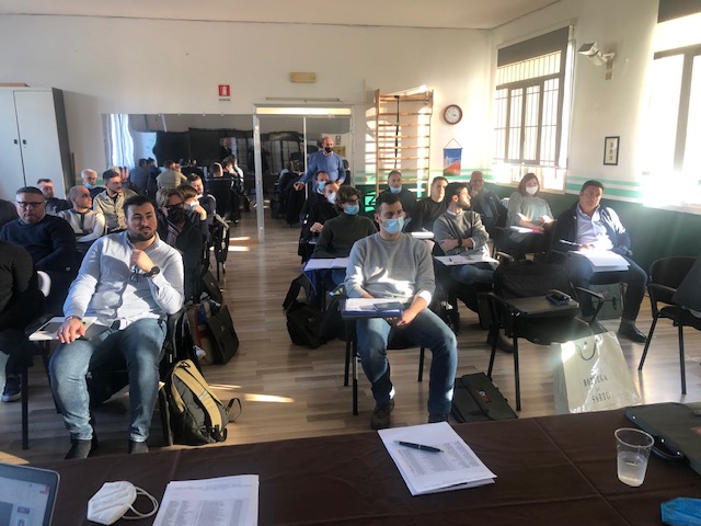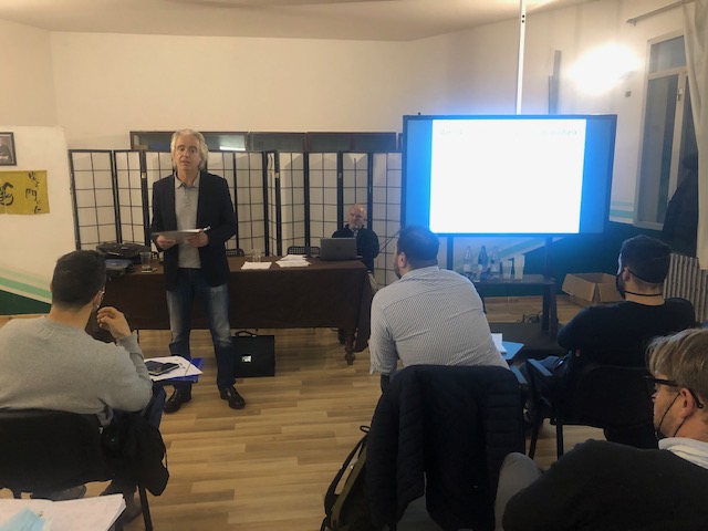 Nelle foto: l’aula dei partecipanti; il presidente Mangini (a sinistra) con Molinari e Maurizio Bonifacio, tutor di segreteria del corso; l’avvocato Mattia Grassani; il dottor Matteo Cioffi con Molinari