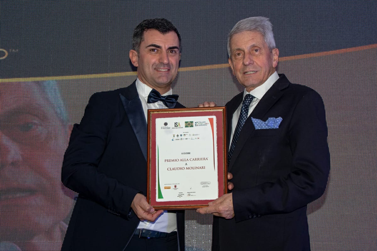 Fra i premiati Caudio Molinari che ha ricevuto il Premio alla carriera per i suoi lunghi trascorsi sportivi e per il ruolo di vicepresidente esecutivo dell’A.Di.Se. (Associazione Italiana Direttori sportivi e Segretari) – braccio destro del presidente Giuseppe Marotta – che lo vede ancora in prima linea. Nella motivazione del Premio anche l’organizzazione del Calciomercato che Molinari gestisce ininterrottamente, fra sessioni estive e invernali, da oltre 80 edizioni, e le iniziative didattico-formative dell’A.Di.Se. con i corsi per Collaboratori della gestione sportiva della Lega Nazionale Dilettanti, iniziati ben 10 anni fa e che hanno visto finora circa 1200 dirigenti abilitati, e quello intrapreso quest’anno per la preparazione all’esame di direttore sportivo FIGC, insieme all’Associazione Italiana Calciatori e all’Università Telematica San Raffaele, Roma.